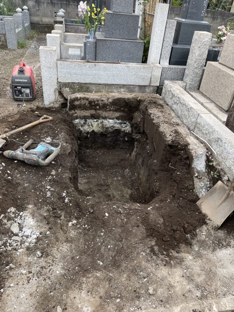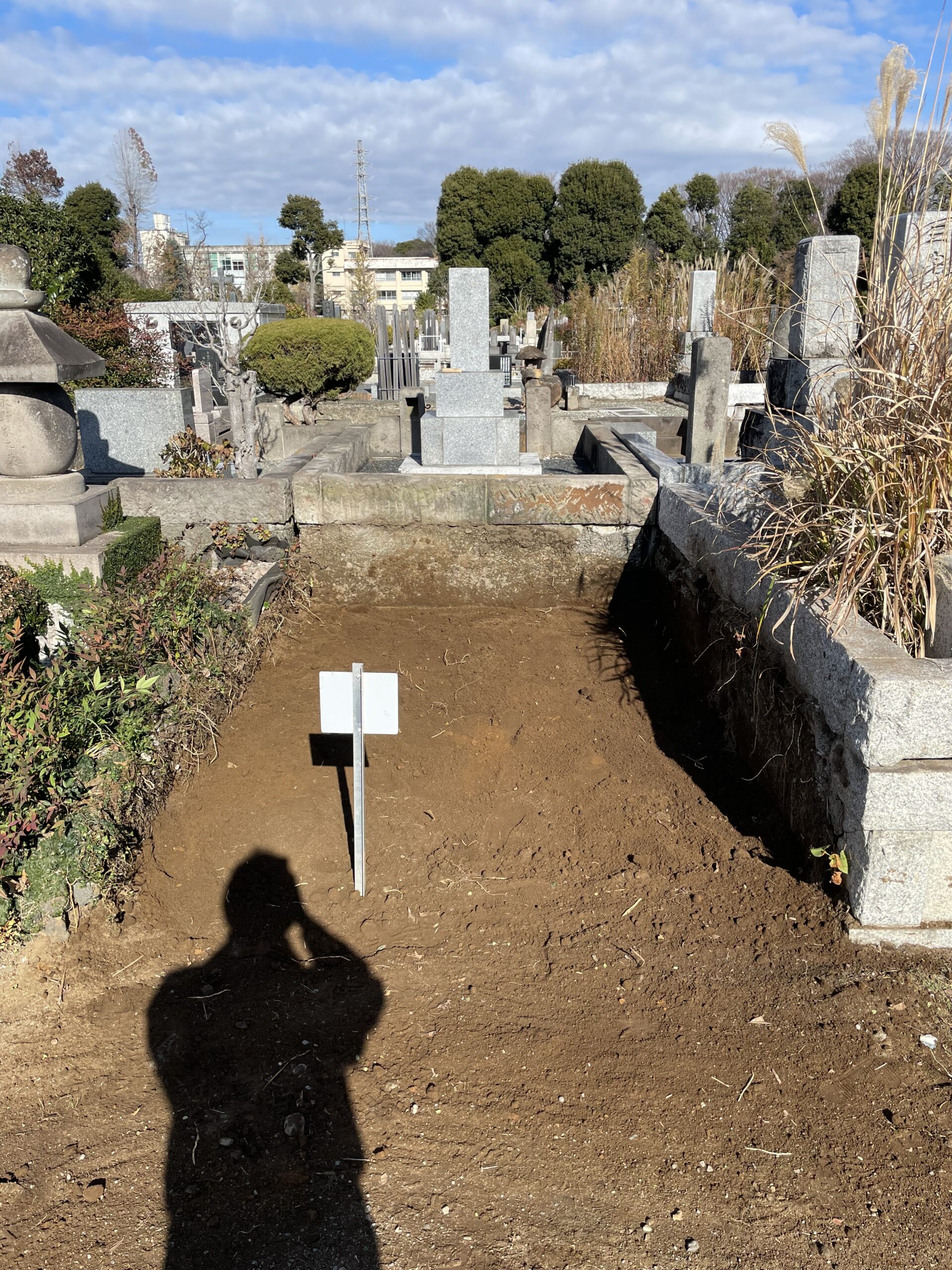 墓所は階段型で基礎部分が多くありましたが、地中の基礎まで掘り返し、すべて撤去しております。
